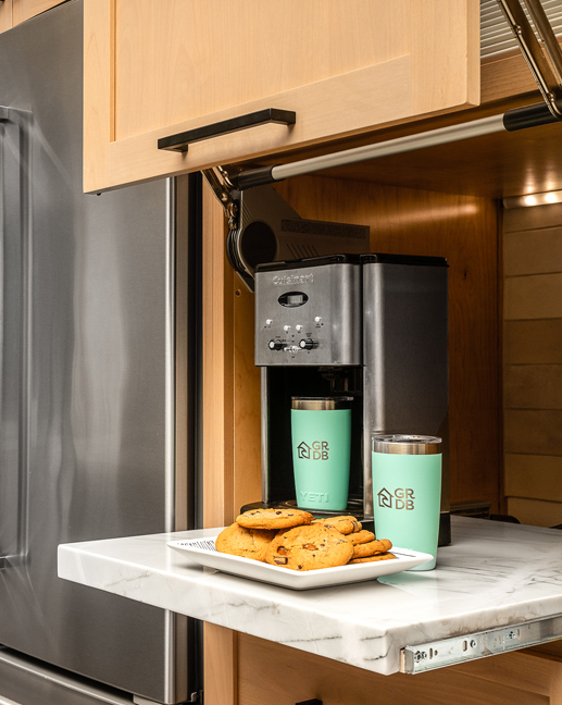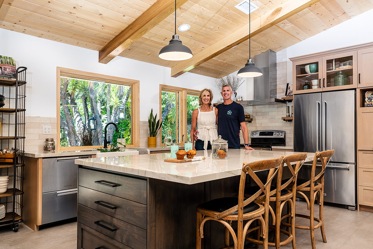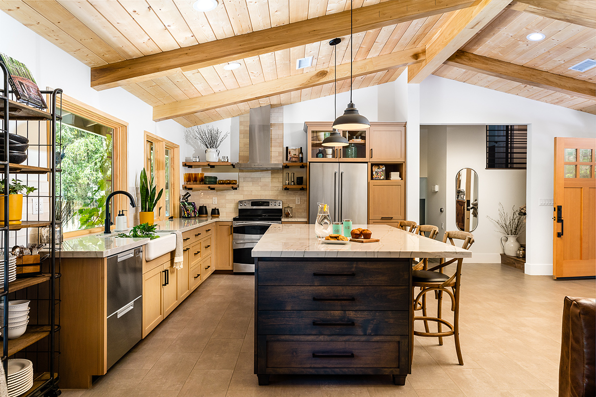 Pacific Northwest transplants brought their signature style and taste to San Diego with a full kitchen, living, and great room remodel. Designed for empty nesters, the home now has ample space to welcome their growing grandchildren, while a custom stone fireplace serves as a warm, inviting centerpiece. Thoughtful detailing and curated finishes blend cozy, natural textures with modern functionality, honoring their design roots while embracing coastal California living.