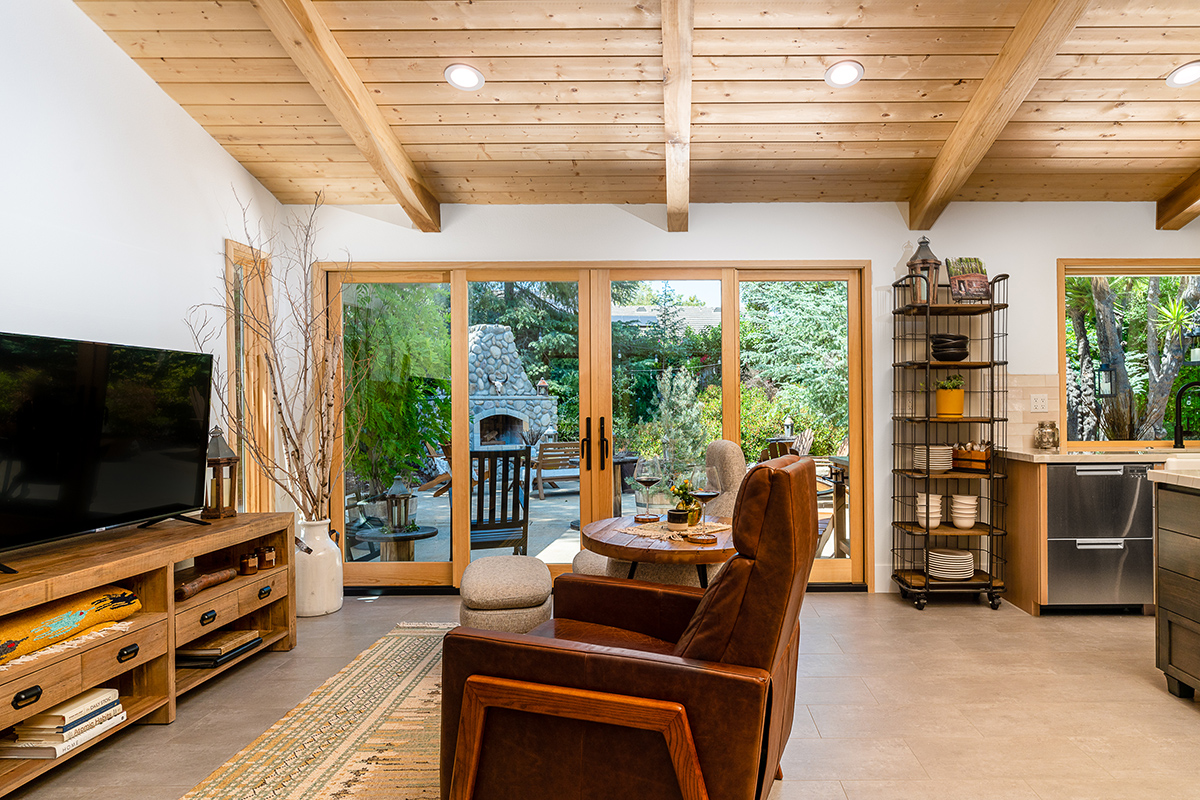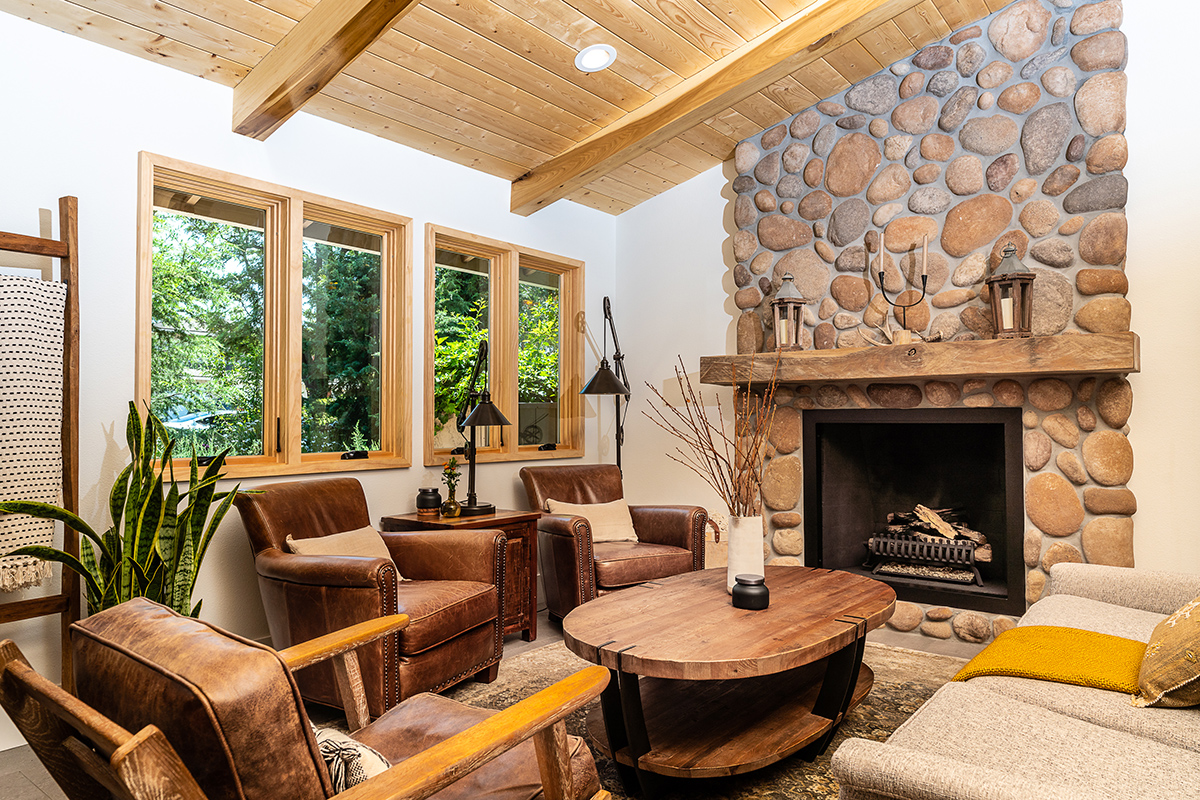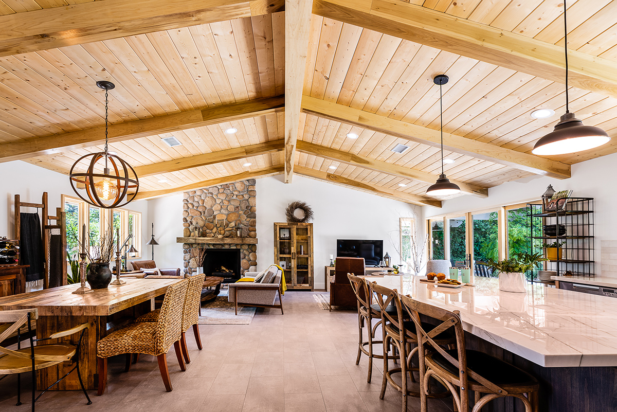 I wanted to put in writing how much we have appreciated working with the Green Room Design Build Team. It all started with us securing a flyer from one of your very cool display signs. Getting a return call from Courtney, energy you could feel coming through the phone lines, and then meeting Jake (if you look up charisma in the dictionary, I think there is a picture of Jake) for our first meeting at our home, made it clear we were on the right road for our remodel adventure. The manner you approached the bid process, using pictures you had taken and clearly showing you understood what we were trying to achieve, was unique in the process of talking with potential contractors. One of the most compelling features of our project is the tongue and groove ceiling with stunning beams. Lowering the ceiling to allow for HVAC vents was both a functional innovation you devised but also brings an extra warmth to the room. This was a true example of Design Smart, Build Well. Thanks Josh for helping with our project and dropping by to assist. We enjoyed meeting Matt too and appreciated his muscle to move the mantle into place. It is bittersweet to be ending the project as we won’t be seeing Landon. We will always remember the energy and care brought to the process by an amazing and dynamic team. The finished project is beyond our original dream, and we will always be indebted to the Green Room Design Build Team for making this dream a reality and helping us come home to excellence.
